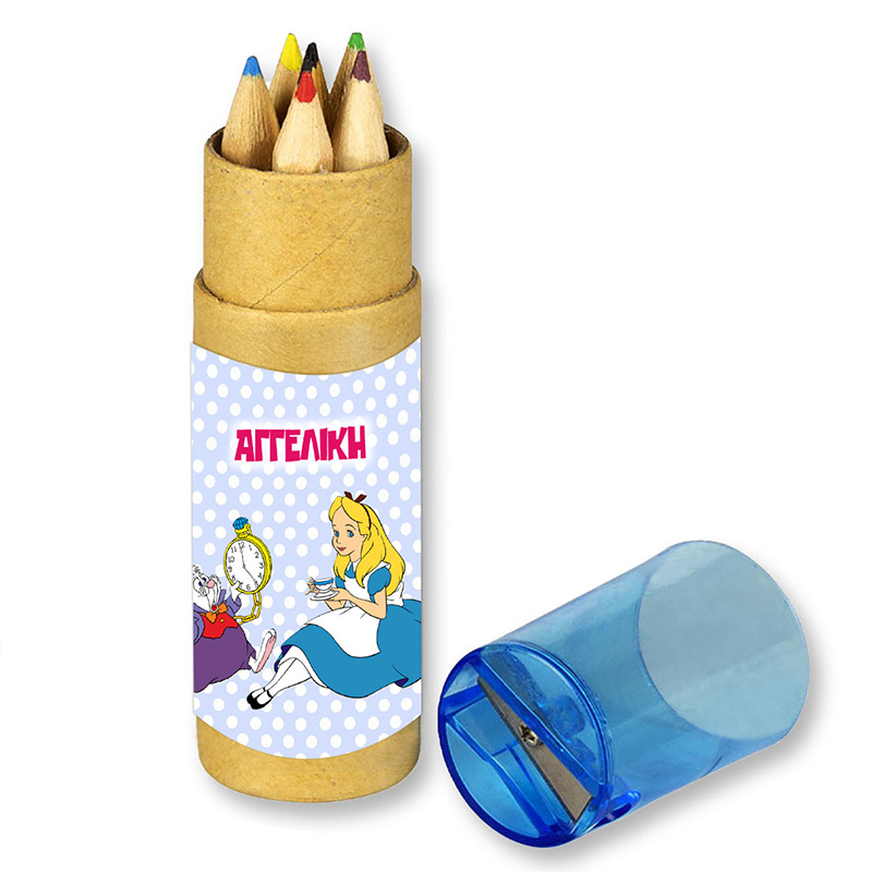 Σετ Ξυλομπογιές 6τμχ με ξύστρα Η Αλίκη στη Χώρα των Θαυμάτων με όνομα ένα υπέροχο δωράκι για τους μικρούς μας φίλους. Για την Βάπτιση και το Πάρτι σας.