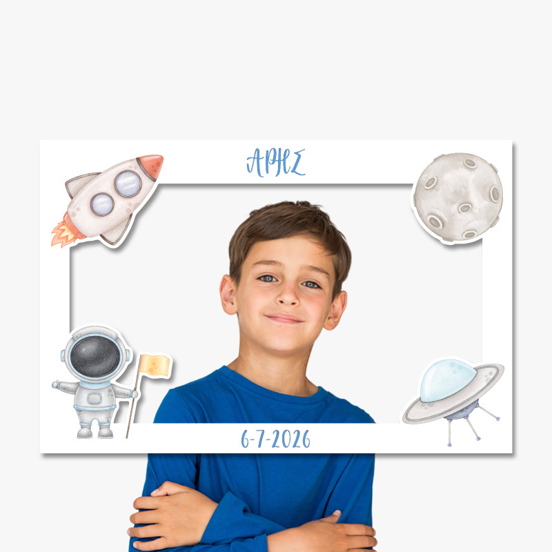 Προσωποποιημένο κάδρο Photobooth με θέμα χαριτωμένα Αστροναύτης, για να φωτογραφηθείτε μαζί με τους καλεσμένους σας.