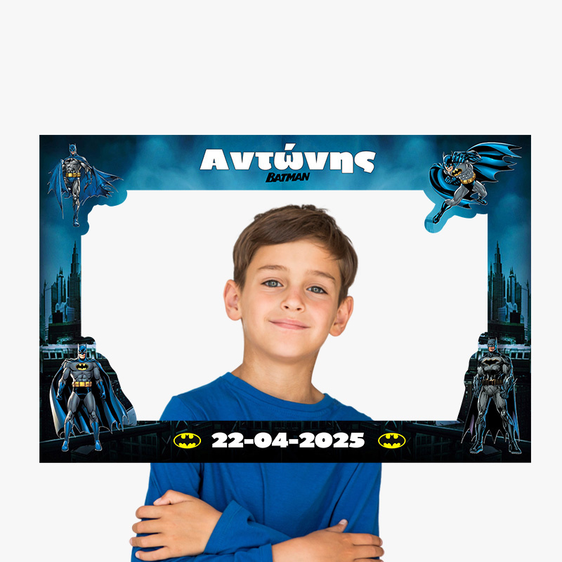 Προσωποποιημένο κάδρο Photobooth με θέμα Batman, για να φωτογραφηθείτε μαζί με τους καλεσμένους σας.