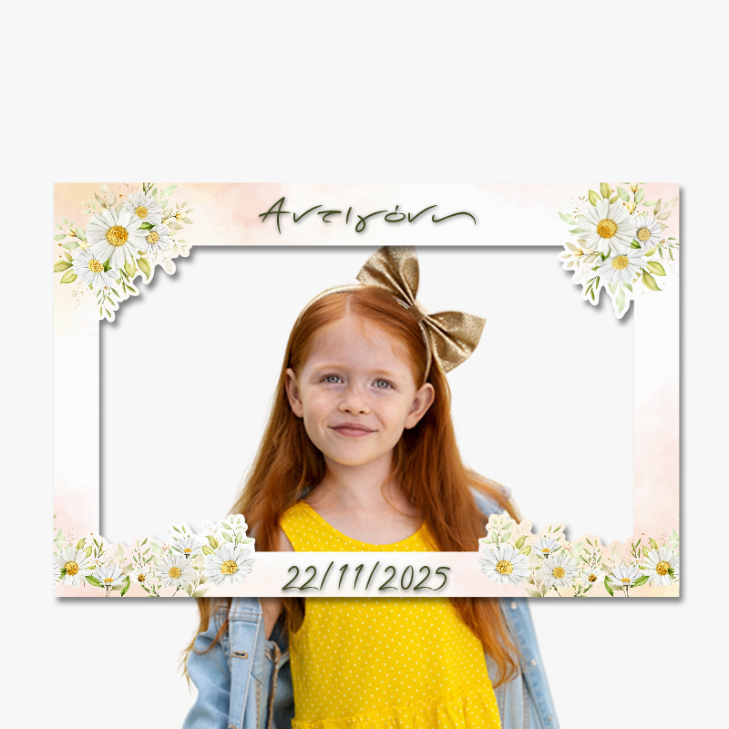 Προσωποποιημένο κάδρο Photobooth με θέμα Μαργαρίτα, για να φωτογραφηθείτε μαζί με τους καλεσμένους σας.