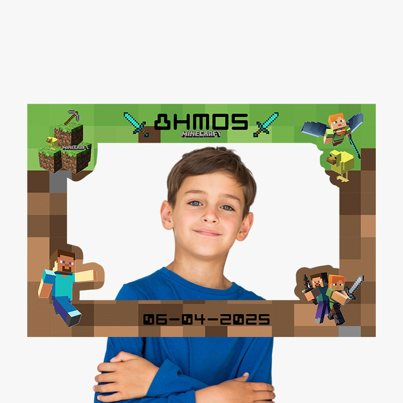 Προσωποποιημένο κάδρο Photobooth με θέμα Minecraft, για να φωτογραφηθείτε μαζί με τους καλεσμένους σας.