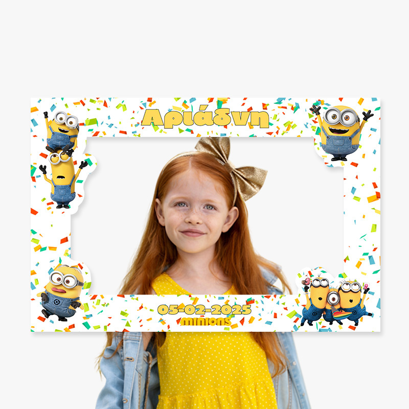 Προσωποποιημένο κάδρο Photobooth με θέμα Minions, για να φωτογραφηθείτε μαζί με τους καλεσμένους σας.