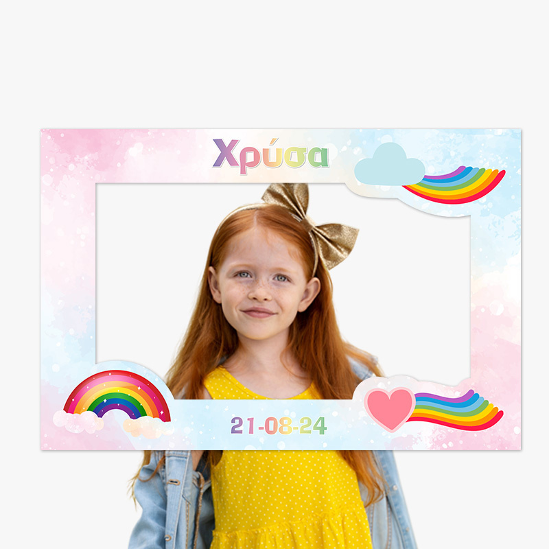 Προσωποποιημένο κάδρο Photobooth με θέμα Ουράνιο Τόξο, για να φωτογραφηθείτε μαζί με τους καλεσμένους σας.