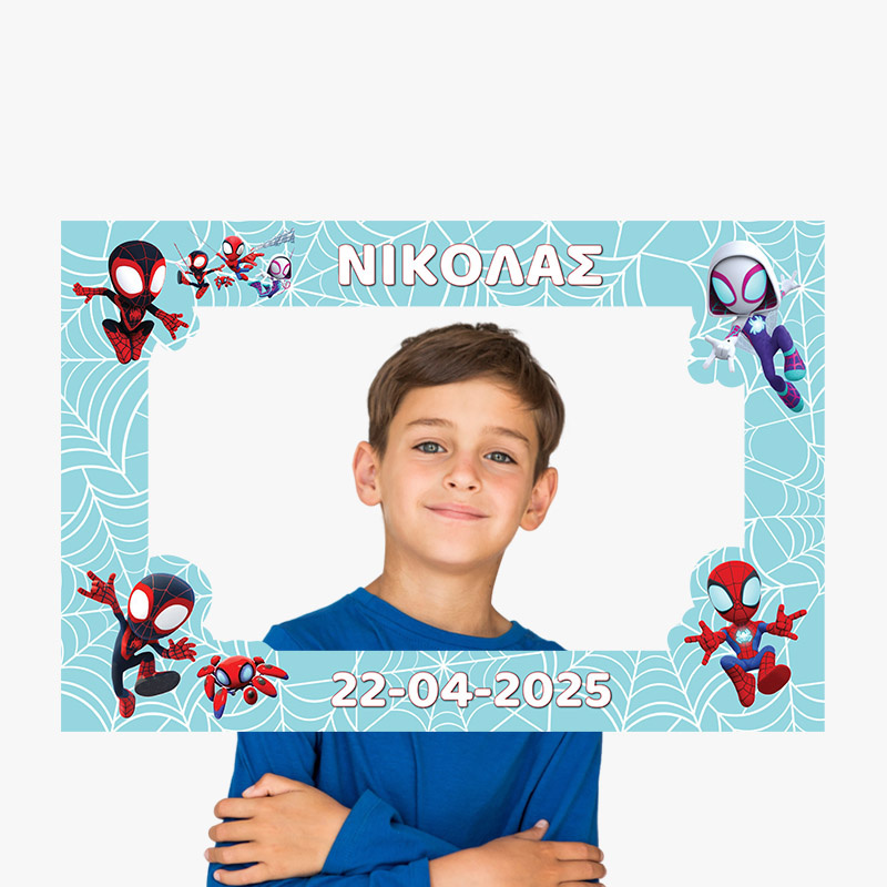 Προσωποποιημένο κάδρο Photobooth με θέμα Spidey, για να φωτογραφηθείτε μαζί με τους καλεσμένους σας.