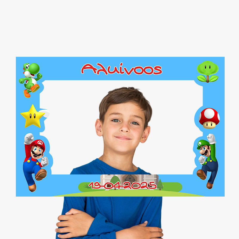 Προσωποποιημένο κάδρο Photobooth με θέμα Super Mario, για να φωτογραφηθείτε μαζί με τους καλεσμένους σας.