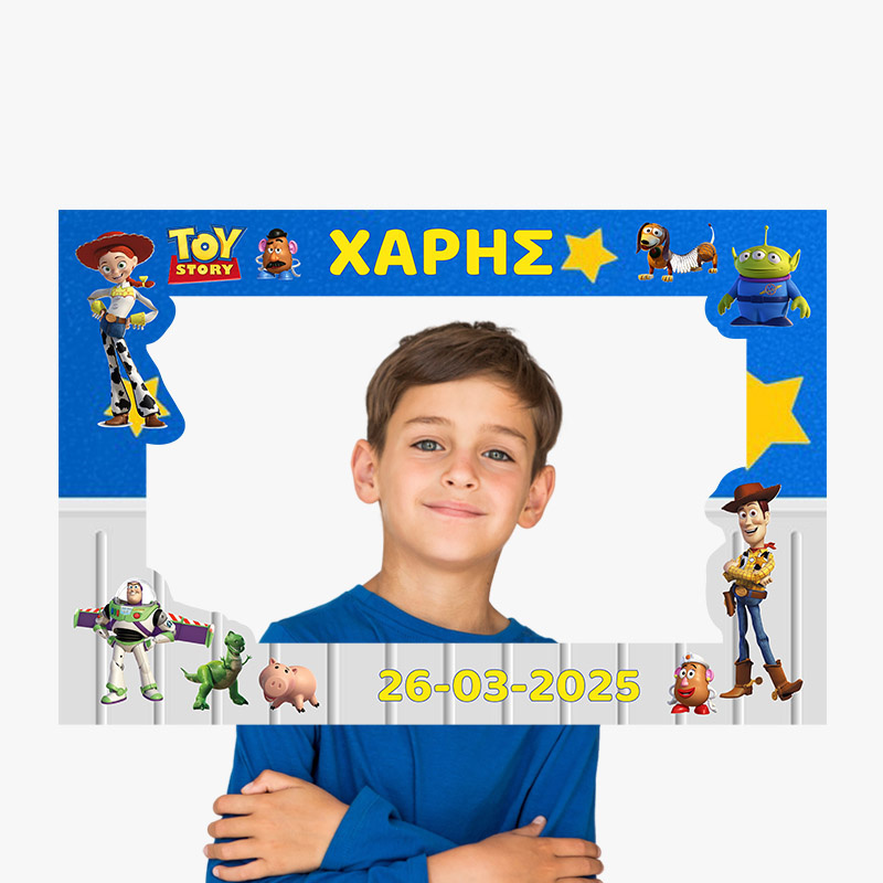 Προσωποποιημένο κάδρο Photobooth με θέμα Toy Story, για να φωτογραφηθείτε μαζί με τους καλεσμένους σας.