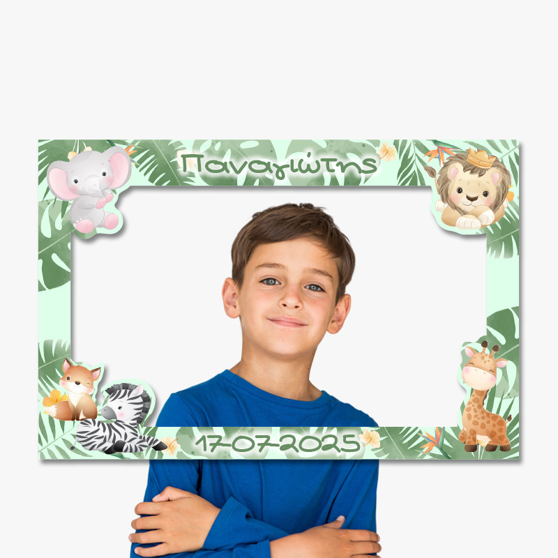 Προσωποποιημένο κάδρο Photobooth με θέμα χαριτωμένα Ζωάκια Ζούγκλας, για να φωτογραφηθείτε μαζί με τους καλεσμένους σας.