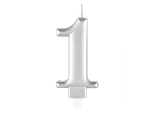 Κερί “1” ασημί μεταλλικό / 8 εκ.