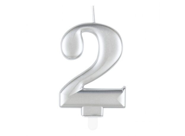 Κερί “2” ασημί μεταλλικό / 8 εκ.