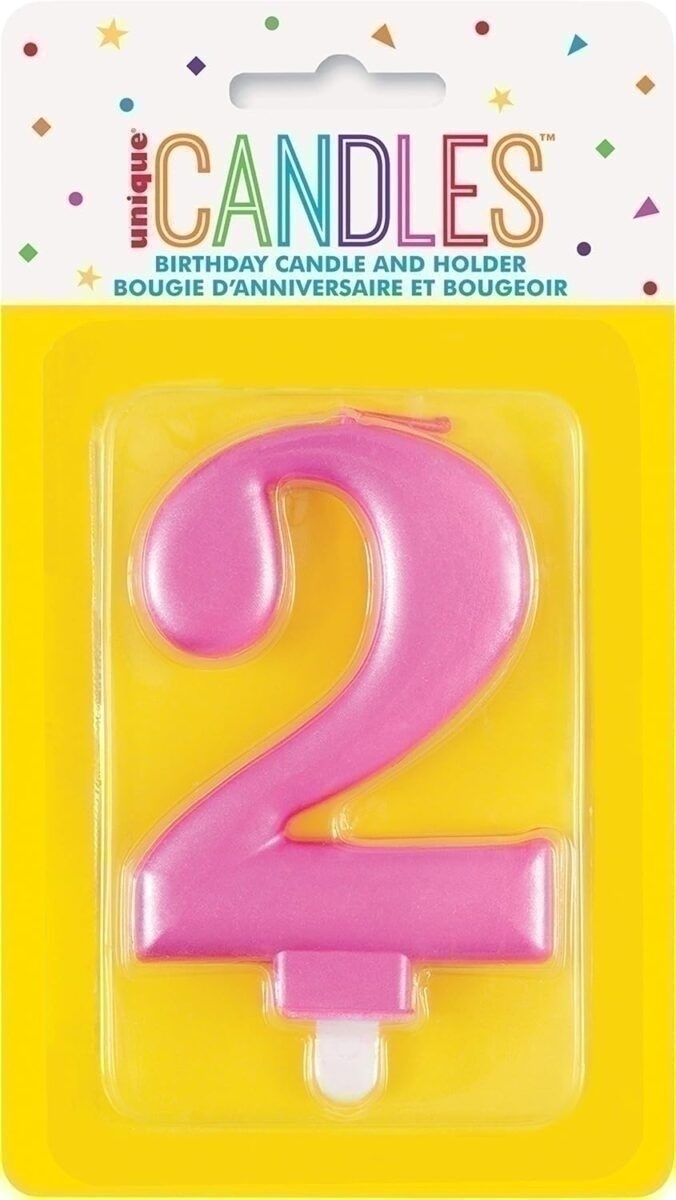Κερί “2” Μεταλλικό Ροζ / 8 εκ.