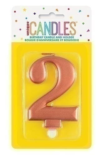 Κερί “2” Μεταλλικό Ροζ Χρυσό / 8 εκ.