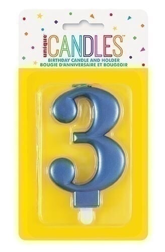 Κερί “3” Μεταλλικό Μπλέ / 8 εκ.