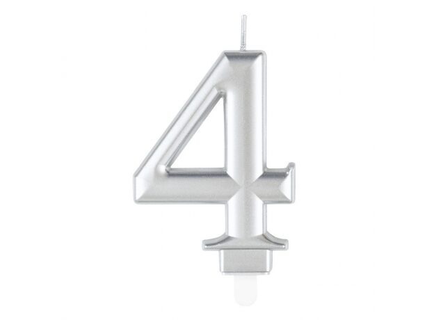 Κερί “4” ασημί μεταλλικό / 8 εκ.