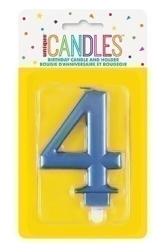 Κερί “4” Μεταλλικό Μπλέ / 8 εκ.