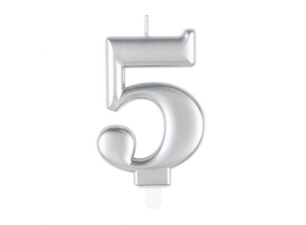 Κερί “5” ασημί μεταλλικό / 8 εκ.