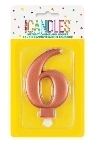 Κερί “6” Μεταλλικό Ροζ Χρυσό / 8 εκ.