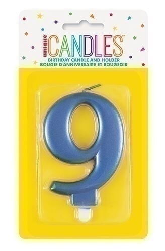 Κερί “9” Μεταλλικό Μπλέ / 8 εκ.