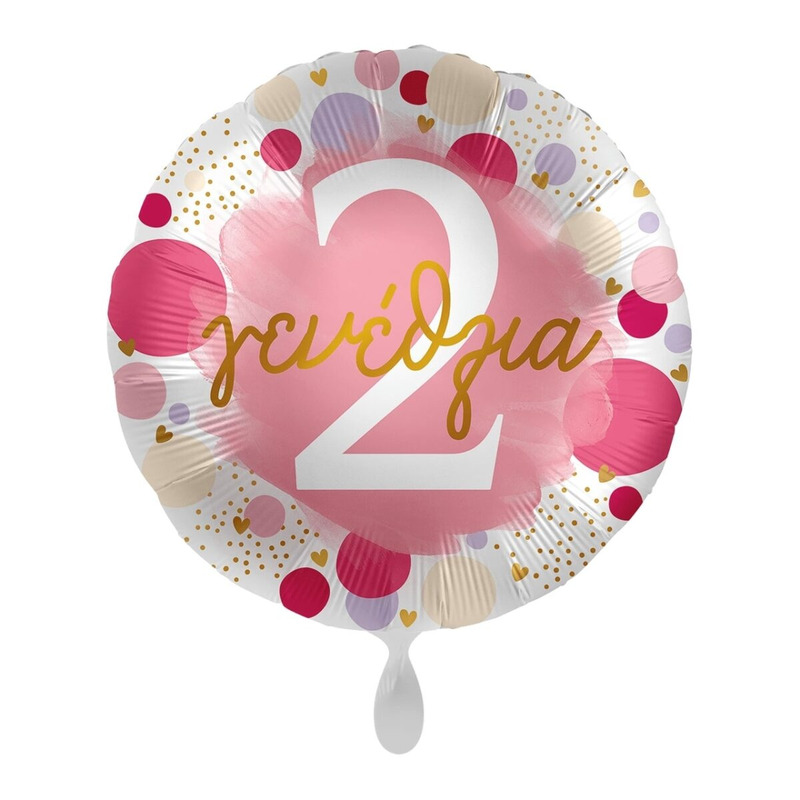 Μπαλόνι Φοιλ 17 Χαρούμενα 2 Γενέθλια Πουά Ροζ και Χρυσό / 43 εκ