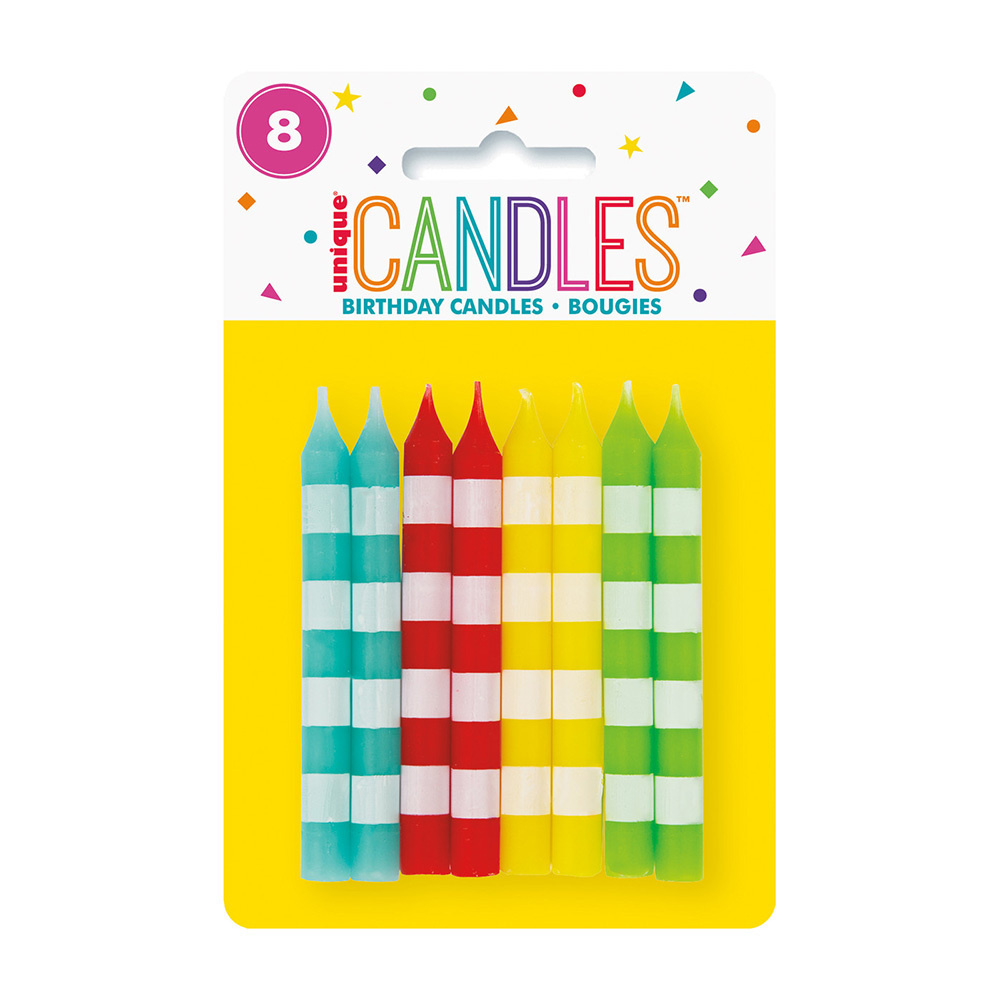 Κεριά Happy Birthday ριγέ Ασορτί / 8 τεμ. ποσότητα