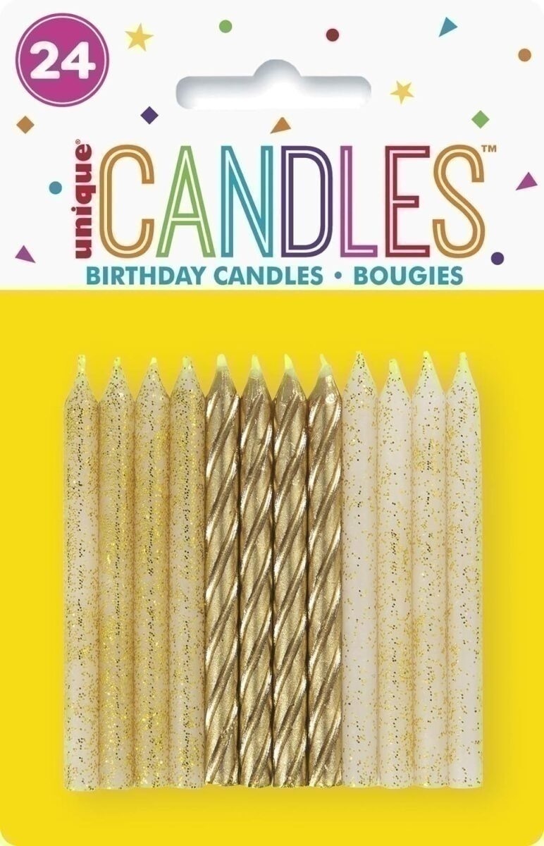 Κεριά σπιράλ ασορτί Χρυσό γκλίτερ / 24 τμχ