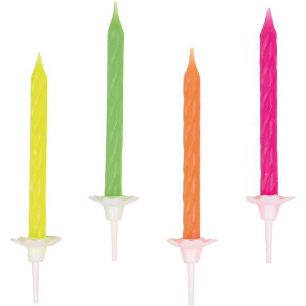 Each set contains candles in multiple neon colours.