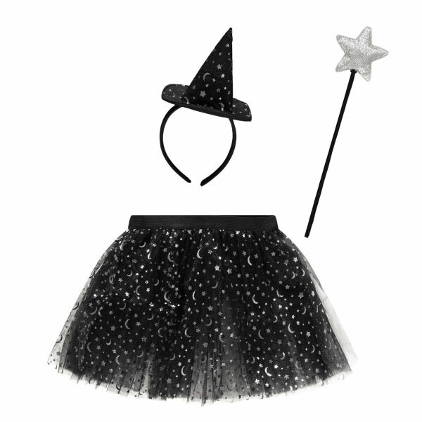Περιλαμβάνει φούστα με τούλι,στέκα με καπέλλο μάγισσας και ραβδάκι