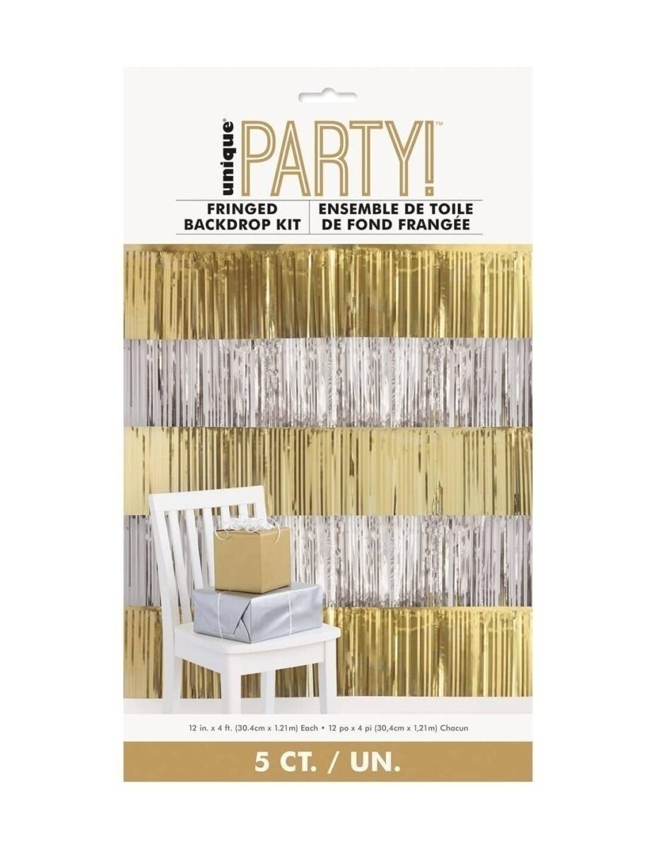 Κουρτίνα μεταλλική με κρόσια Backdrop Χρυσό & Ασημί /Gold & Silver σε 5 τμχ Κάθε Τεμάχιο είναι 30.4εκ X 1.21εκ