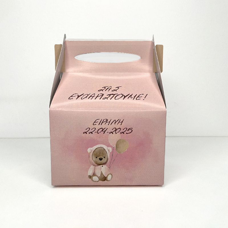 Χάρτινο κουτί Αρκουδάκι για Κορίτσι για συσκευασία δώρου σε βάπτιση και πάρτυ.