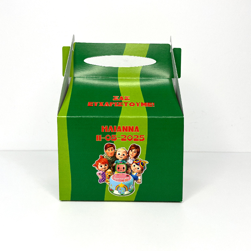 Χάρτινο κουτί Cocomelon για συσκευασία δώρου σε βάπτιση και πάρτυ.