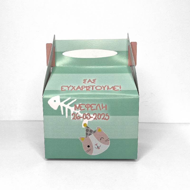 Χάρτινο κουτί Hello Pets για συσκευασία δώρου σε βάπτιση και πάρτυ.