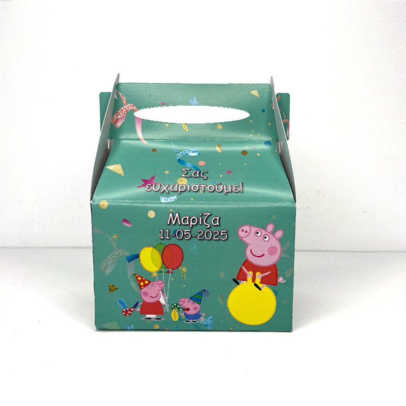 Χάρτινο κουτί Peppa Pig για συσκευασία δώρου σε βάπτιση και πάρτυ.