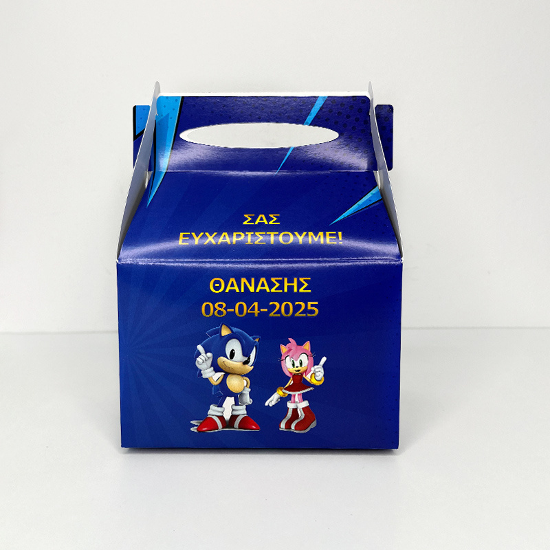 Χάρτινο κουτί Sonic για συσκευασία δώρου σε βάπτιση και πάρτυ.