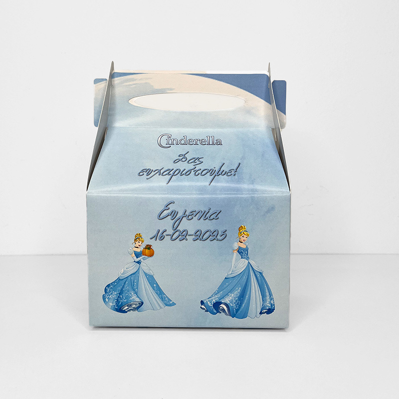 Χάρτινο κουτί Σταχτοπούτα για συσκευασία δώρου σε βάπτιση και πάρτυ.