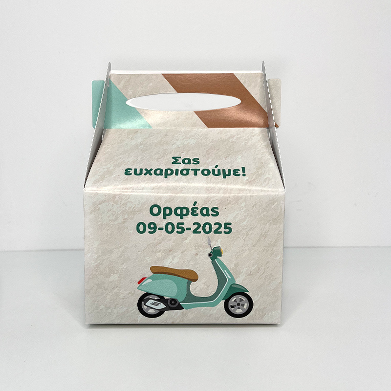 Χάρτινο κουτί Βέσπα για συσκευασία δώρου σε βάπτιση και πάρτυ.