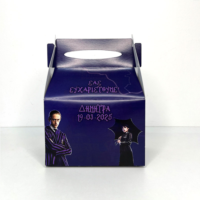 Χάρτινο κουτί Wednesday για συσκευασία δώρου σε βάπτιση και πάρτυ.