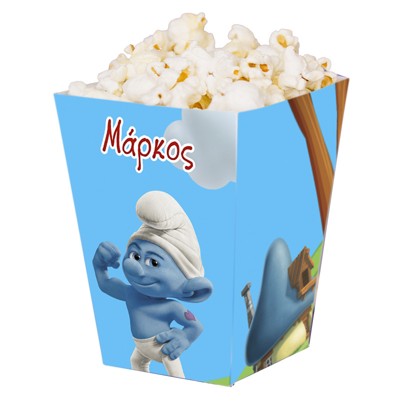 Κουτί για ποπ κορν Στρουμφάκια για παιδικά πάρτυ.