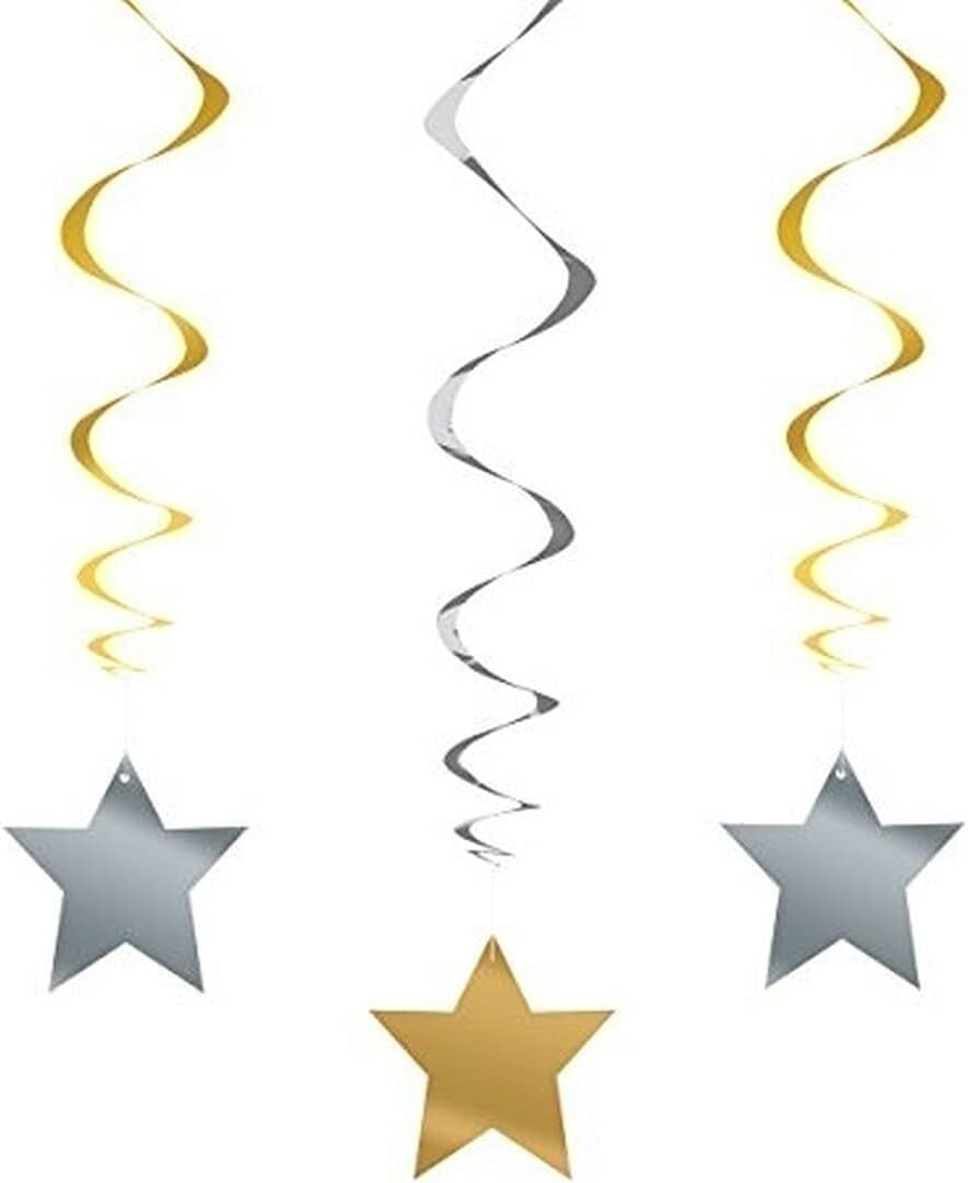 Κρεμαστά Διακοσμητικά 66εκ Αστέρια Χρυσό και Ασημί / 3 τεμ