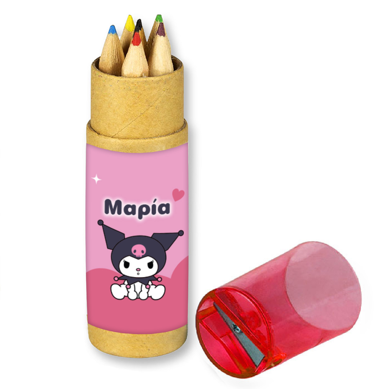 Σετ Ξυλομπογιές 6τμχ με ξύστρα Kuromi με όνομα ένα υπέροχο δωράκι για τους μικρούς μας φίλους. Για την Βάπτιση και το Πάρτι σας.