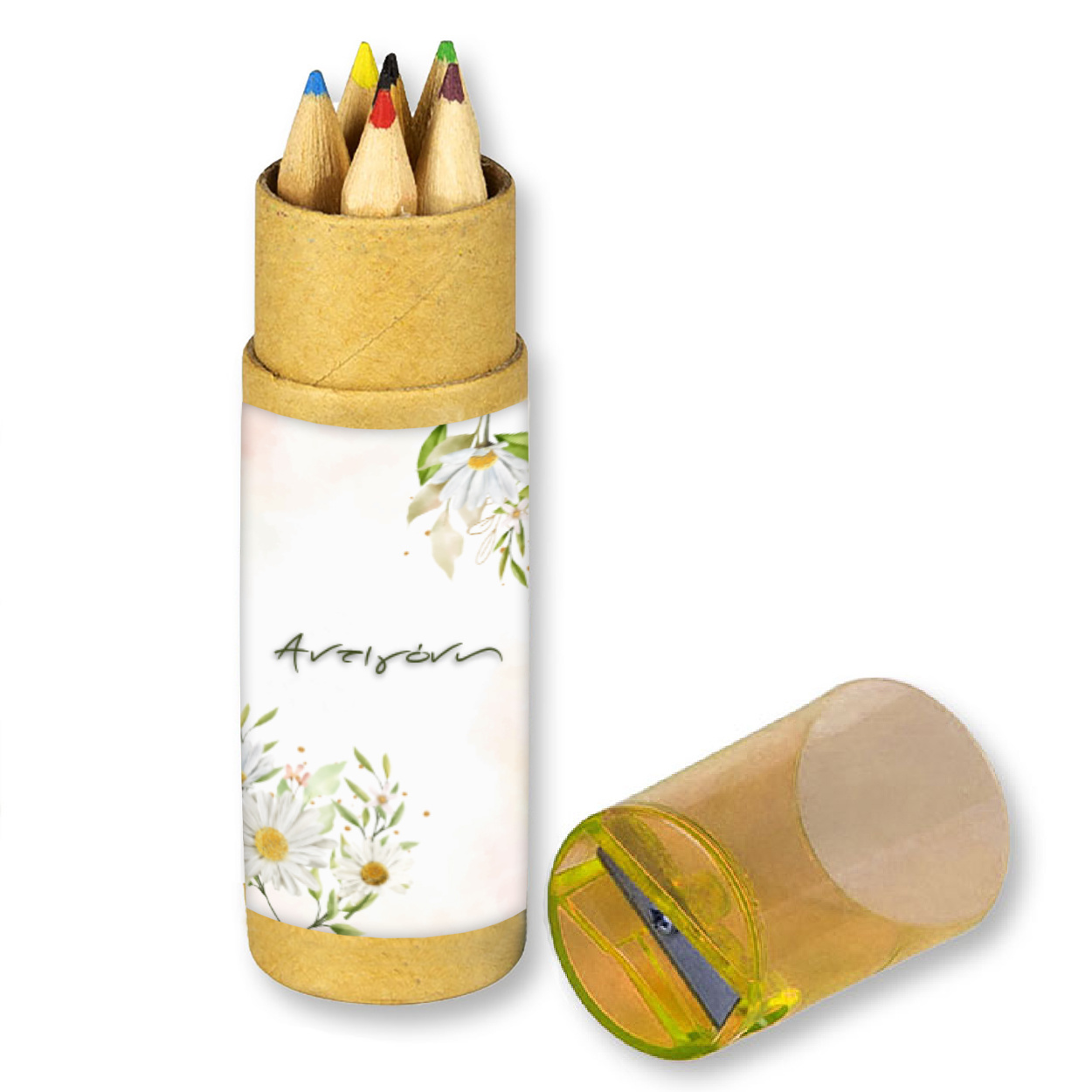 Σετ Ξυλομπογιές 6τμχ με ξύστρα Μαργαρίτα με όνομα ένα υπέροχο δωράκι για τους μικρούς μας φίλους. Για την Βάπτιση και το Πάρτι σας.