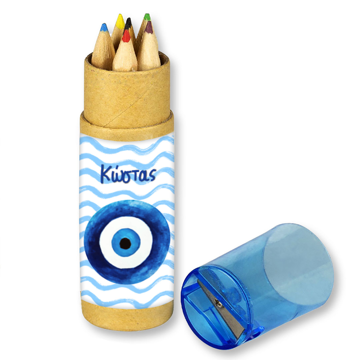 Σετ Ξυλομπογιές 6τμχ με ξύστρα Μάτι για Αγόρι με όνομα ένα υπέροχο δωράκι για τους μικρούς μας φίλους. Για την Βάπτιση και το Πάρτι σας.