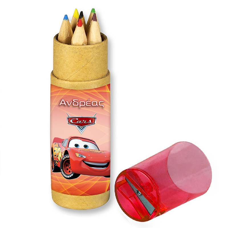 Σετ Ξυλομπογιές 6τμχ με ξύστρα McQueen με όνομα ένα υπέροχο δωράκι για τους μικρούς μας φίλους. Για την Βάπτιση και το Πάρτι σας.