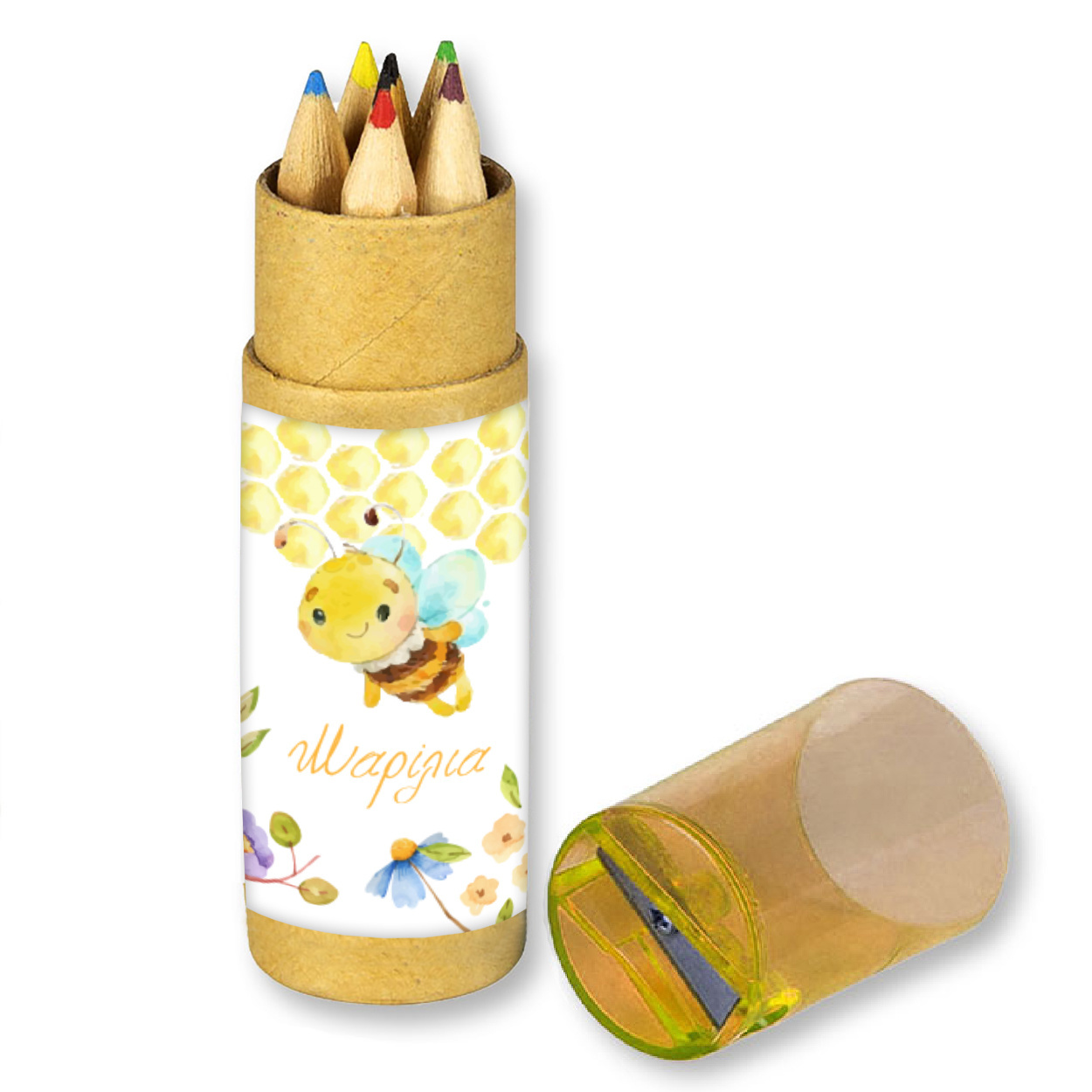 Σετ Ξυλομπογιές 6τμχ με ξύστρα Μέλισσα με όνομα ένα υπέροχο δωράκι για τους μικρούς μας φίλους. Για την Βάπτιση και το Πάρτι σας.