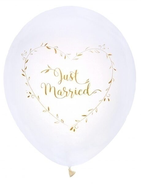 Μπαλόνια Μεταλ. Λευκά με χρυσόJust Marriedwedding / 8τεμ.