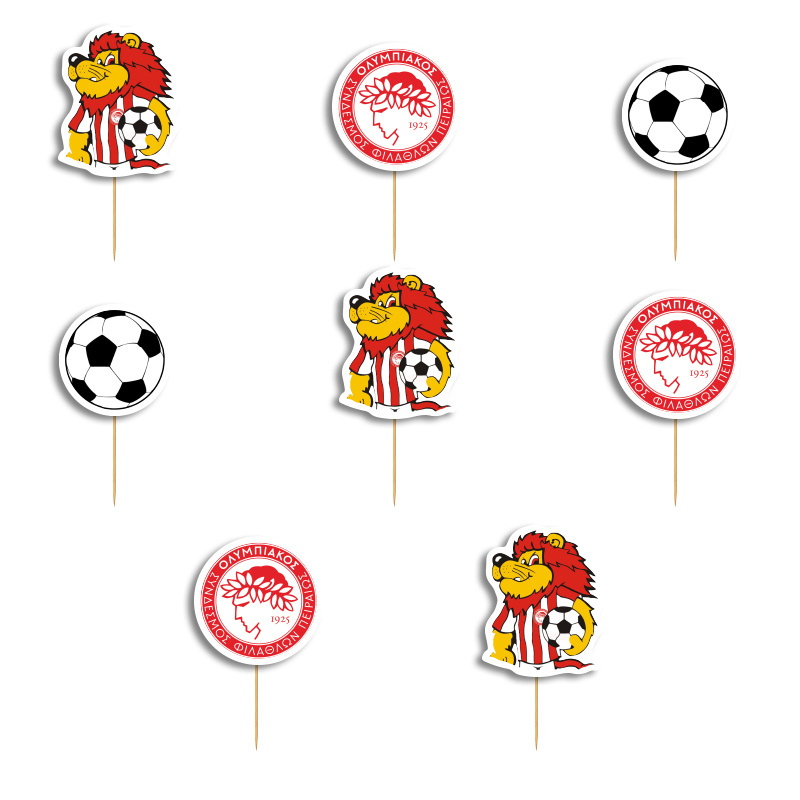 Οδοντογλυφίδες για να στολίσετε τα φαγητά και τα γλυκά του πάρτι με θέμα Ολυμπιακός