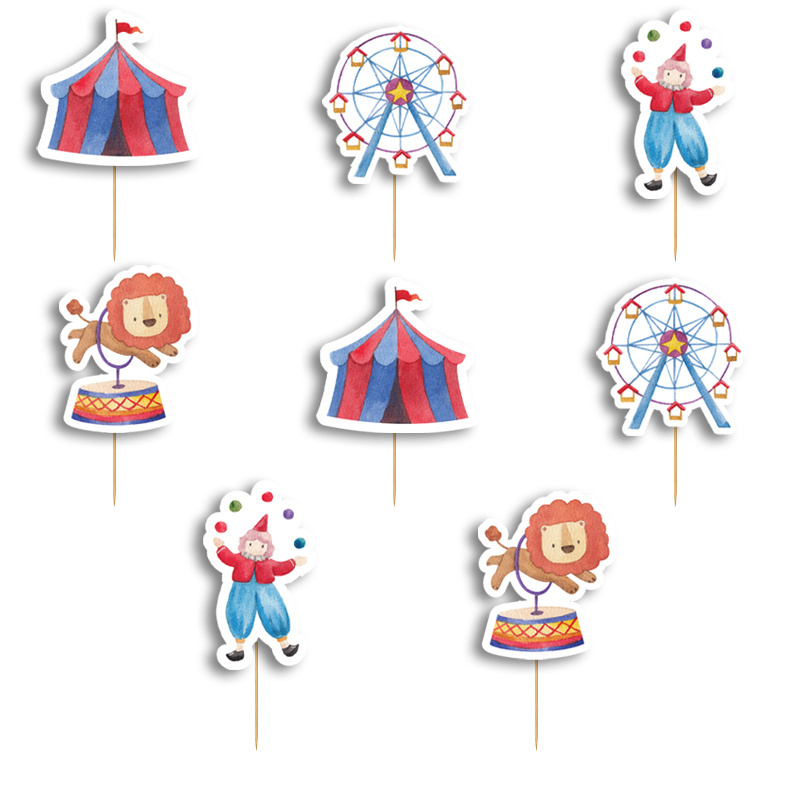Οδοντογλυφίδες για να στολίσετε τα φαγητά και τα γλυκά του πάρτι με θέμα Τσίρκο