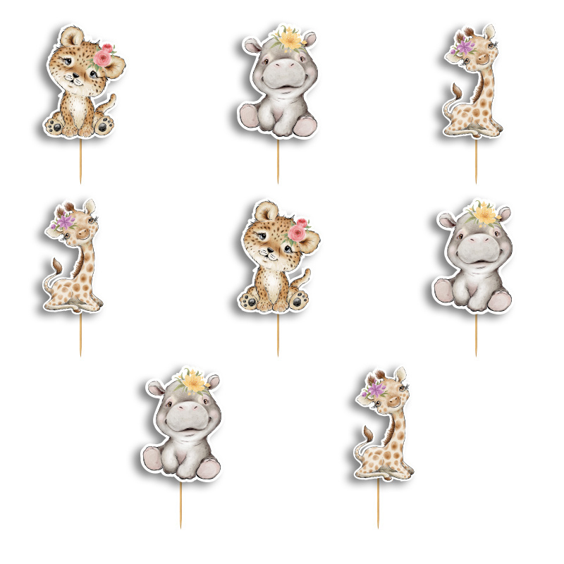 Οδοντογλυφίδες για να στολίσετε τα φαγητά και τα γλυκά του πάρτι με θέμα Ζωάκια ζούγκλας Κορίτσι