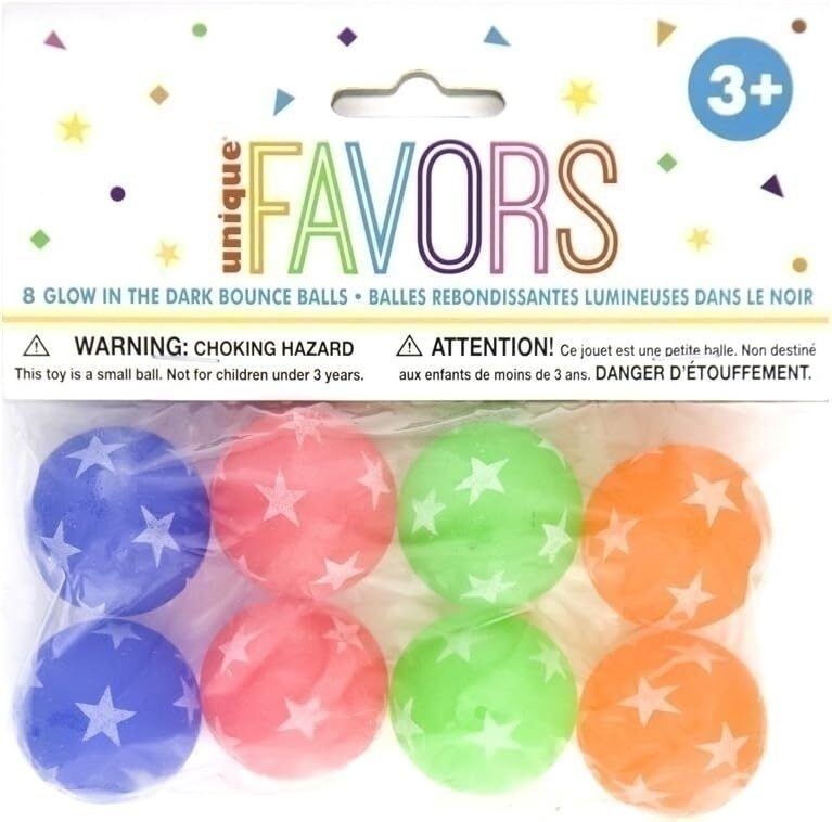 Πακέτο απο 8 Παιχνιδάκια μπαλάκια που λαμπυρίζουν στο σκοτάδι.