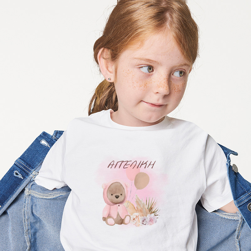 Μοναδικό μπλουζάκι Αρκουδάκι Ροζ με όνομά τυπωμένο