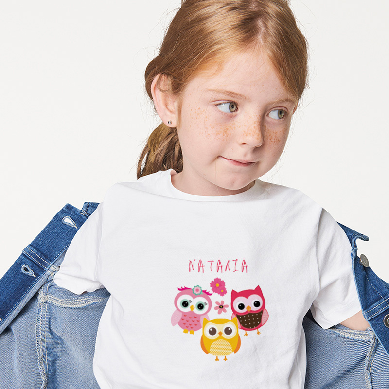 Μοναδικό μπλουζάκι Κουκουβάγιες με όνομά τυπωμένο
