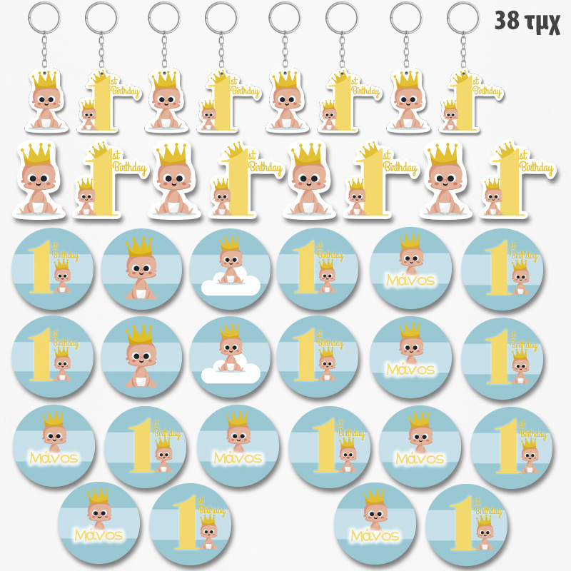 Πακέτο δωράκια 1st Birthday Boy για πάρτυ ή Βάπτιση αποτελείται από 38 τεμάχια που θα φέρουν απόλυτη διασκέδαση και χαρά στους μικρούς σας φίλους.